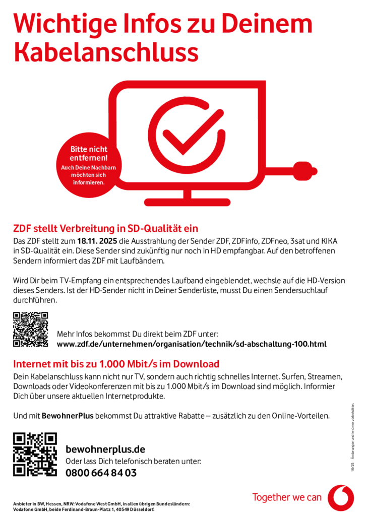 Information zur Senderabschaltung und Kommunikations-Infrastruktur in Ihrem Haus6. November 2025 - 10:50